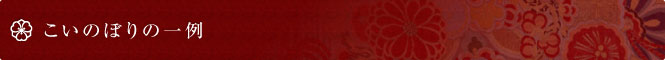 鯉幟り「竜門という滝を登りきると竜になって天に登る」と言う中国の伝説にちなみ立身出世を願う飾りです。